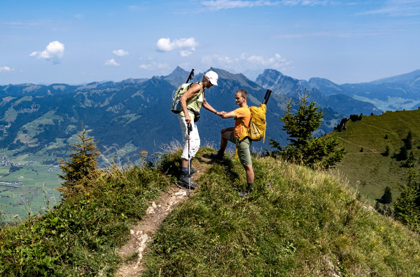 Mitte August war es dann soweit: Die mutigen Betroffenen versammelten sich im schönen Schweizer Glarnerland, um sich ihrer Höhenangst zu stellen. Auch ein kühler Kurzregen konnte der erwartungsvollen Stimmung nichts anhaben und so wanderten die Teilnehmenden zuerst von der Bergstation «Morgenholz» ins Blockhaus «Mettmen», um von den beiden ausgewiesenen Höhencoaches Bettina und David zu erfahren, woher ihre Höhenangst kommt und mit welchen Methoden sie diese auch wieder erfolgreich verlernen können. Nach einer kurzen Verpflegungspause wurde das erworbene Wissen dann sogleich auf einer Gratwanderung auf die Probe gestellt. Mit Erfolg, denn alle Teilnehmenden haben unter der Leitung zweier erfahrenen SAC-Tourenleitern und in Begleitung der beiden Höhencoaches den anvisierten «Planggenstock» und das «Hirzli» erreicht und wurden bei blauem Himmel mit einer atemberaubenden Weitsicht belohnt.
